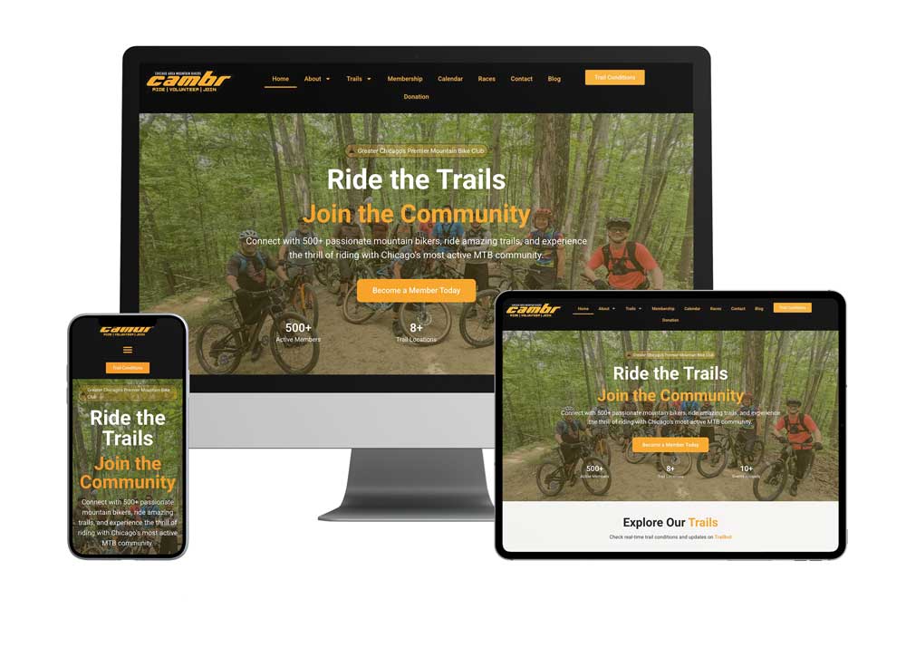 CAMBr is a nonprofit organization dedicated to building, maintaining, and advocating for mountain biking trails throughout the Chicago region. With a passionate membership base and an expanding community, CAMBr needed a modern digital platform that could better support its mission, attract new members, and simplify donations and merchandise sales.